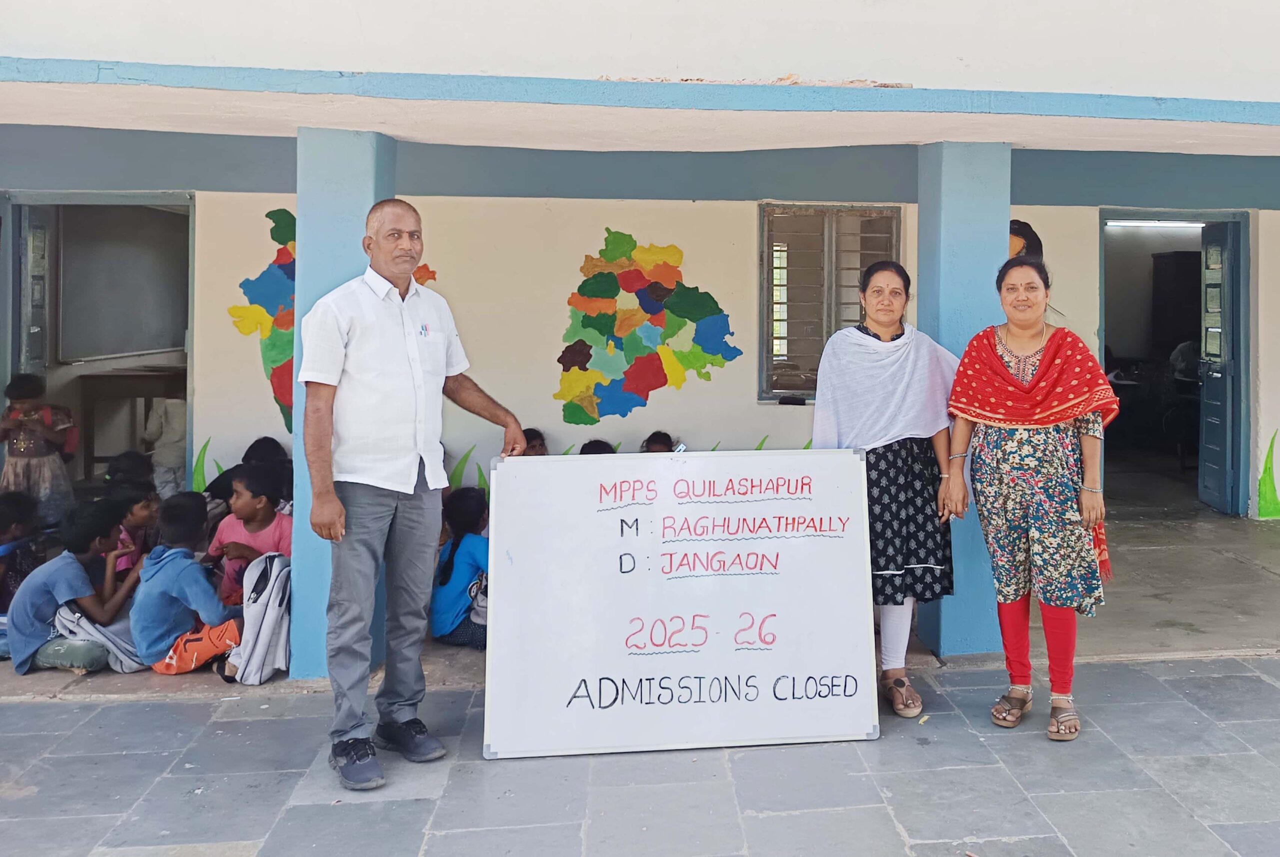 జనగామ జిల్లా రఘునాథపల్లి మండలం ఖిలాషాపురంలో ఒక జెడ్పీహెచ్ఎస్తో పాటు రెండు ప్రైమరీ స్కూళ్లు ఉన్నాయి. అందులో ఒకటి పెద్దగుడి సమీపంలోని ఎంపీపీఎస్ (పెద్దమ్మ గుడి బడి) ఇంగ్లీష్ మీడియం స్కూల్. ఇందులో గత సంవత్సరం 44 మంది విద్యార్థులు ఉన్నారు. ఈ సారి హెచ్ఎం ఆలేటి యాదవ రెడ్డి, టీచర్లు బి.రజిత, జి.రేణుక అడ్మిషన్లపై ప్రత్యేక శ్రద్ధ చూపడంతో 2025–26 విద్యా సంవత్సరానికి నూతనంగా 126 మంది విద్యార్థులు అడ్మిషన్లు పొందారు. గత సంవత్సరం విద్యార్థులతో కలిపి మొత్తం సంఖ్య 170కి చేరుకుంది. ఇంకా కొంత మంది విద్యార్థులు చేరడానికి సిద్ధంగా ఉన్నప్పటికీ పాఠశాలలో తరగతి గదుల కొరత, విద్యార్థులకు నాణ్యమైన విద్య అందించాలని ఉద్దేశంతో 21.06.2025 నుంచి పాఠశాలలో అడ్మిషన్లు నిలిపివేస్తున్నట్లు తెలియజేస్తూ పాఠశాల ముందు ఏకంగా బోర్డు పెట్టారు.